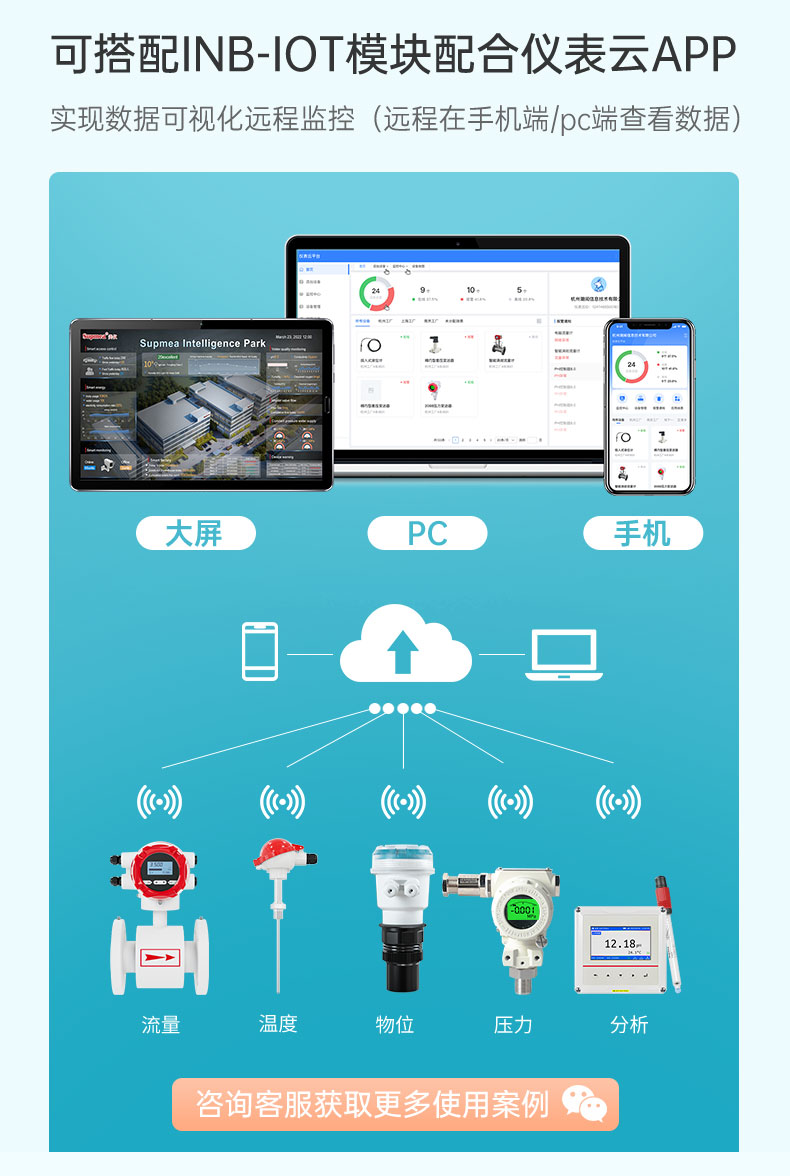 適用場合:壓力變送器選用進口高精度、高穩定性的擴散硅芯體,傳感器內采用電子放大器組成,將測量的電信號轉換成標準信號(電流、電壓、RS485)輸出,可以直接與計算機接口卡、控制儀表、智能儀表或PLC等方便相連,該系列產品廣泛應用于工業過程控制、石油、化工、冶金等行業。