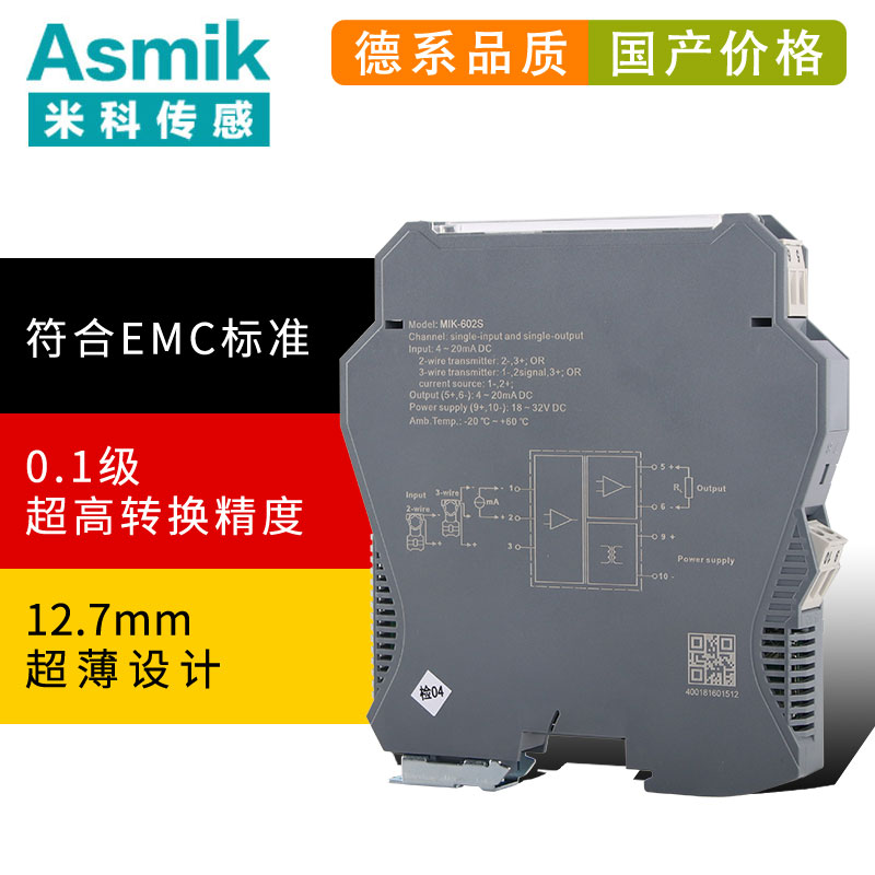 MIK-602S系列信號隔離器,給現(xiàn)場的變送器提供隔離的工作電源,同時檢測回路中的電流/電壓信號,經(jīng)過變換,輸出隔離的電流/電壓信號,實現(xiàn)了輸入、輸出、電源之間的三端隔離。