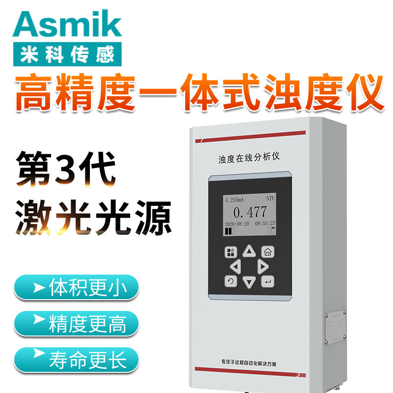 濁度在線分析儀是針對飲用水水質在線監測,量身研發的具有自主知識產權的專利產品,具有超低濁度檢出限、高精度測量、設備長時間免維護、省水工作和數字化輸出的特點,支持RS485-modbus通訊,可廣泛應用于自來水出廠水、二次供水、管網末梢水、直飲水、膜過濾水、游泳池、地表水等濁度在線監測。
