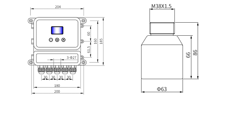 MIK-DUG分體式超聲液差位/物位差計是測量一個超聲波脈沖從發出到返回整個過程所需的時間。超聲波液位差計垂直安裝在液體的表面,兩個探頭分別向液面發出兩個超聲波脈沖,經過一段時間,超聲波液位計的傳感器接收到從液面反射回的信號,信號經過變送器電路的選擇和處理,根據超聲波液位差計發出和接收超聲波的時間差,計算出液面到傳感器的距離。根據兩個探頭的差值,計算出液位(料位)之間的高低差別。分體式超聲波液位差計廣泛用于污水處理、格柵前后,測量兩個液位(料位)的差值。