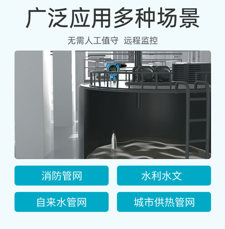 適用場合:無線投入式液位計是基于4G無線通訊網絡使液位的測量、變送、上報為一體的低功耗智能儀表,集成高靈敏度液位檢測元件,高精度信號調理電路,低功耗電池電源管理,豐富的LCD顯示界面于一體,周期性上報液位測量值、電池電量、信號質量等數據,并且能夠當液位超出設置范圍時及時報警,提前預警故障隱患。本產品適合油田、水利、消防管網、自來水管網、城市供熱管網等智慧城市應用場景。