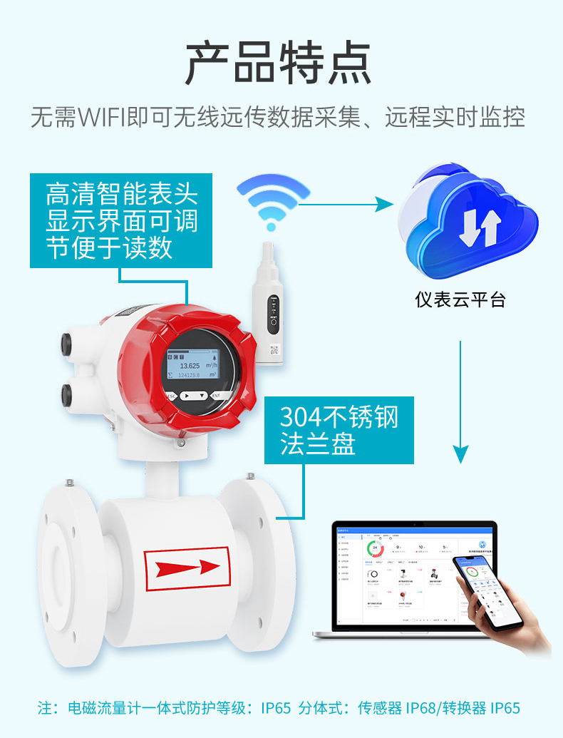 全新A100無線遠傳電磁流量計帶環保認證