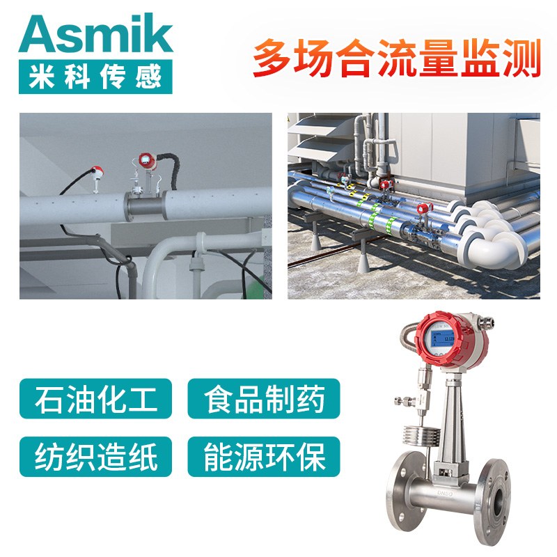 適用場(chǎng)合:渦街流量計(jì)是速度式流量計(jì)的一種,基于卡門(mén)(Karman)旋渦原理研究設(shè)計(jì)的,主要用于工業(yè)管道中介質(zhì)流體的流量測(cè)量,如:氣體、蒸汽或液體等多種介質(zhì)的流量控制和計(jì)量。渦街流量計(jì)廣泛應(yīng)用于供熱、供氣、化工、環(huán)保、冶金、紡織、鋼鐵、醫(yī)藥、造紙、排水等廠礦企業(yè)對(duì)過(guò)熱蒸汽、飽和蒸汽、壓縮空氣和一般氣體(氧氣、氮?dú)狻錃狻⑻烊粴狻⒚簹獾龋⑺鸵后w(如:水、汽油、酒精、苯類等)的計(jì)量和控制。