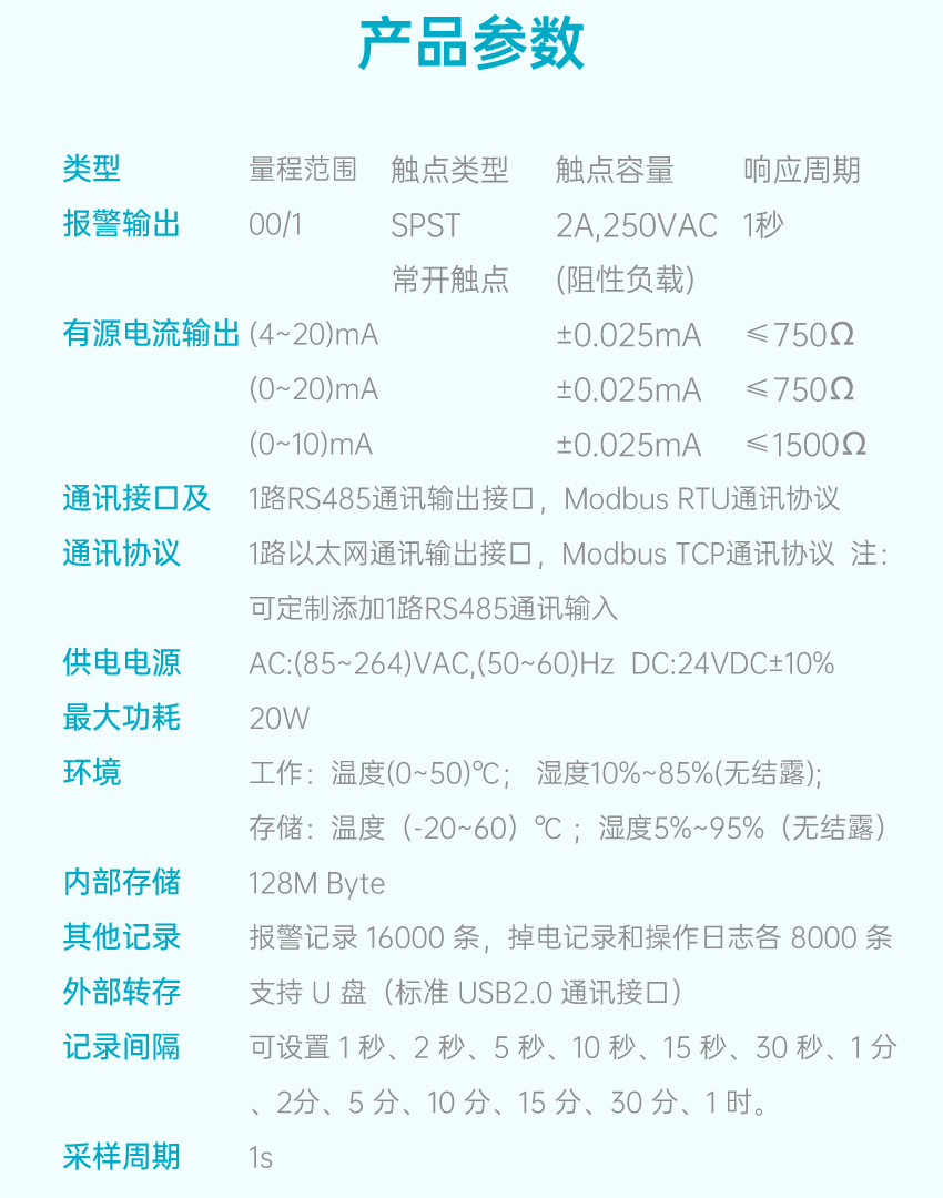 適用場合:本產品為工業無紙記錄儀,配置分辨率為 1024*600 的 7 英寸 TFT真彩全視角液晶顯示屏。可以接入電流、電壓、熱電偶、熱電阻、電阻和頻率(定制)等多種類型工業標準信號,實現溫度、濕度、壓力、液位、流量的顯示、記錄、超限監控、報表、數據通訊、信號變送以及流量累積、流量溫壓補償等功能。可應用于冶金、石油、化工、建材、造紙、電力、食品、制藥、工業水處理等行業。