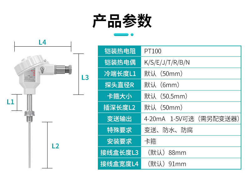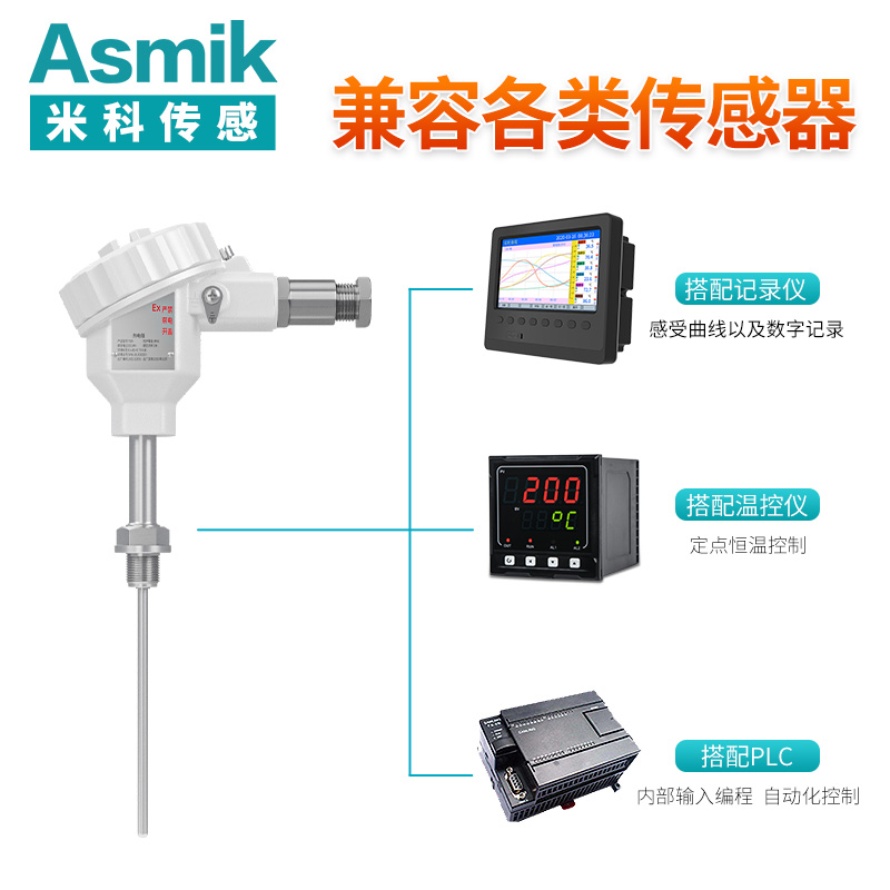 適用場合:米科隔爆鎧裝溫度傳感器可以直接測量各種生產(chǎn)過程中液體,蒸汽和氣體介質(zhì)以及固體表面的溫度,通常和顯示儀表、記錄儀表等配套使用。